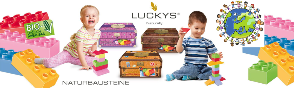 LUCKYS® NATURBAUSTEINE, eine Messeneuheit auf der Spielwarenmesse 2016 in Nürnberg, gehen im Bereich der Bausteine für 1 ½ bis 5 Jahre alte Kinder einen neuen, nachhaltigen Weg. ARBOBLEND®, das biologisch abbaubare Material für LUCKYS® aus nachwachsenden Rohstoffen,